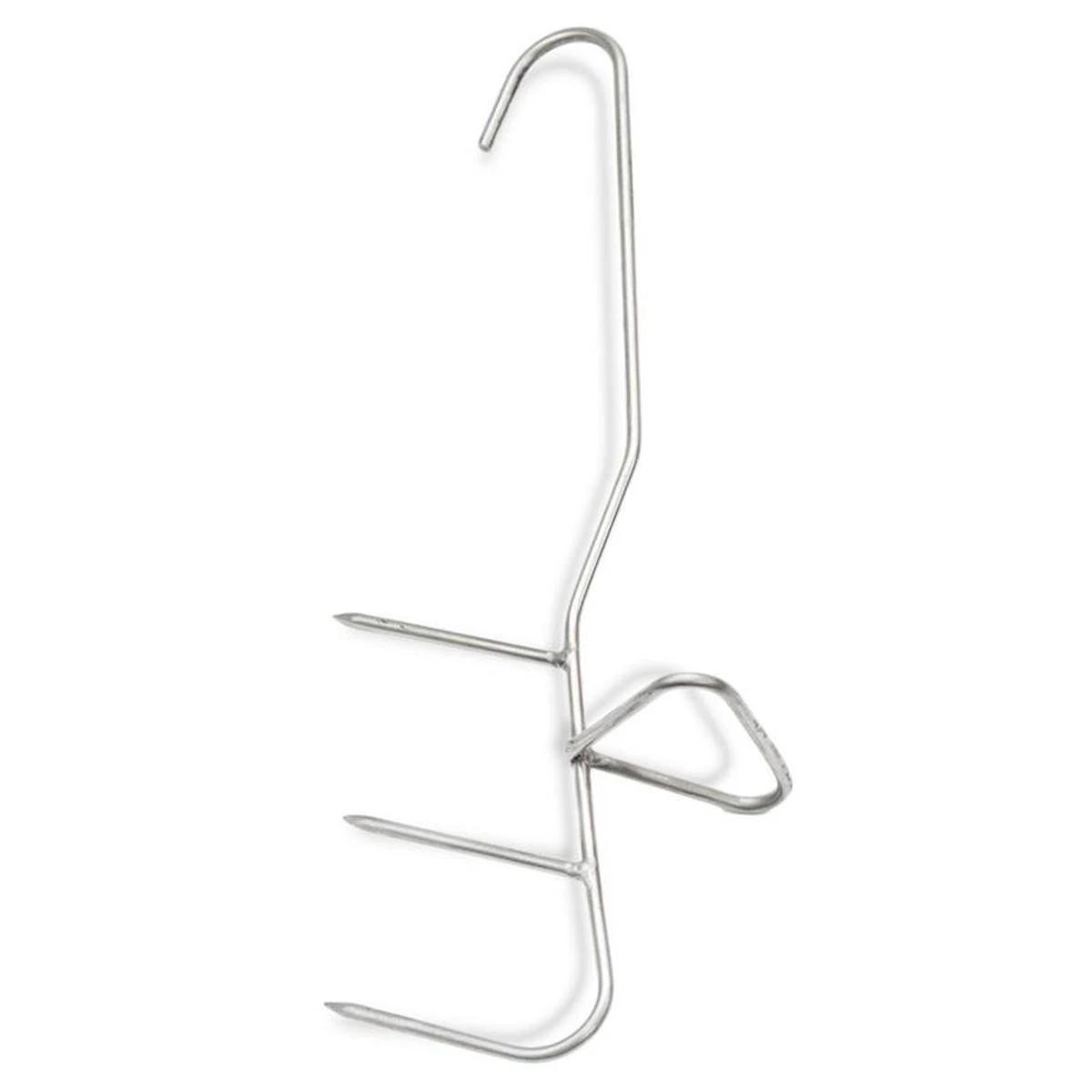 Der Haken Typ 21 hat drei Spitzen und eine Spreize, die bewirkt, dass der Fisch beim Räuchern nicht geschlossen wird.