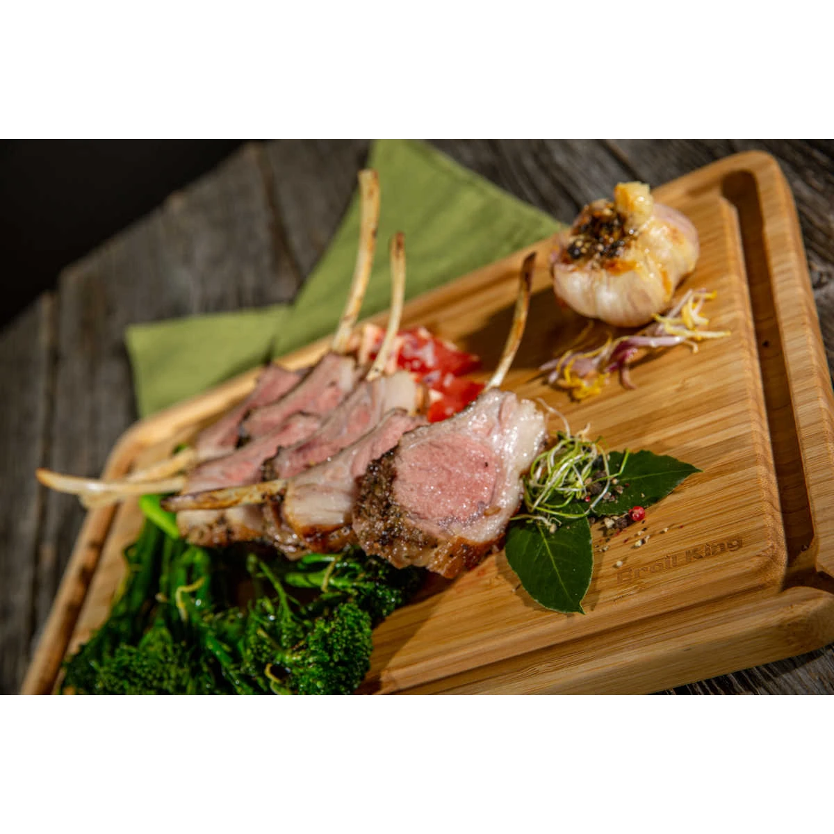 Dieses massive Broil King Schneidebrett wurde aus hochwertigem Bambusholz gefertigt und verfügt über einen integrierten Ablaufrand für Fleischsäfte.