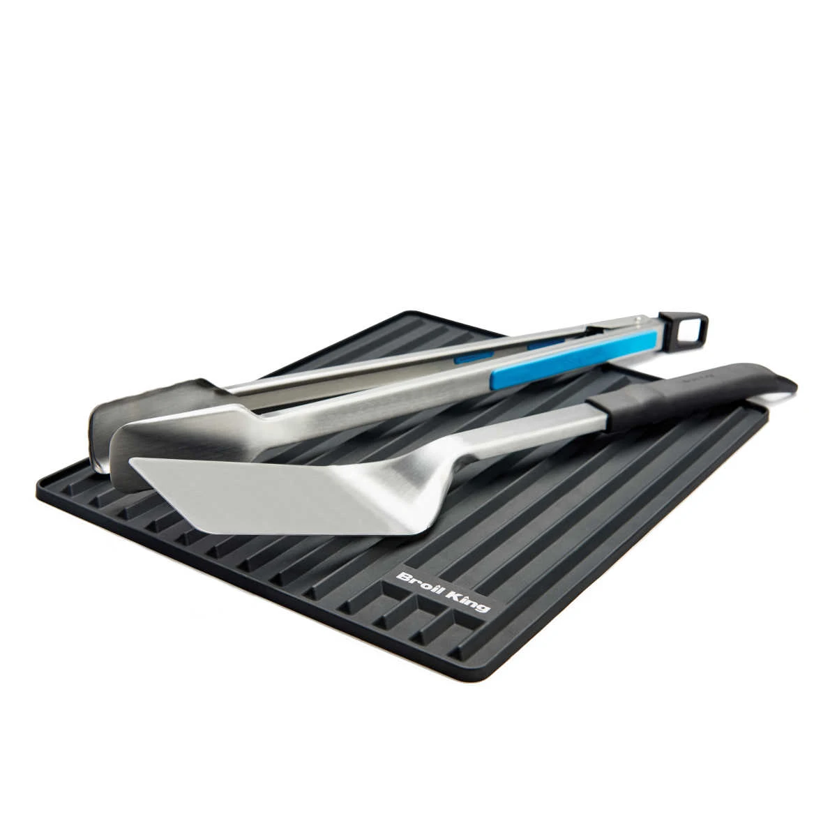 Die Broil King Silikon Besteckablage schützt die Seitenablage Eures Broil King Regal Pellet Smokers vor Tropfrückständen und Kratzspuren. Dank der magnetischen Unterseite bleibt die Besteckablage aus hochwertigem Silikon fest an der Seitenablage des Grills haften.