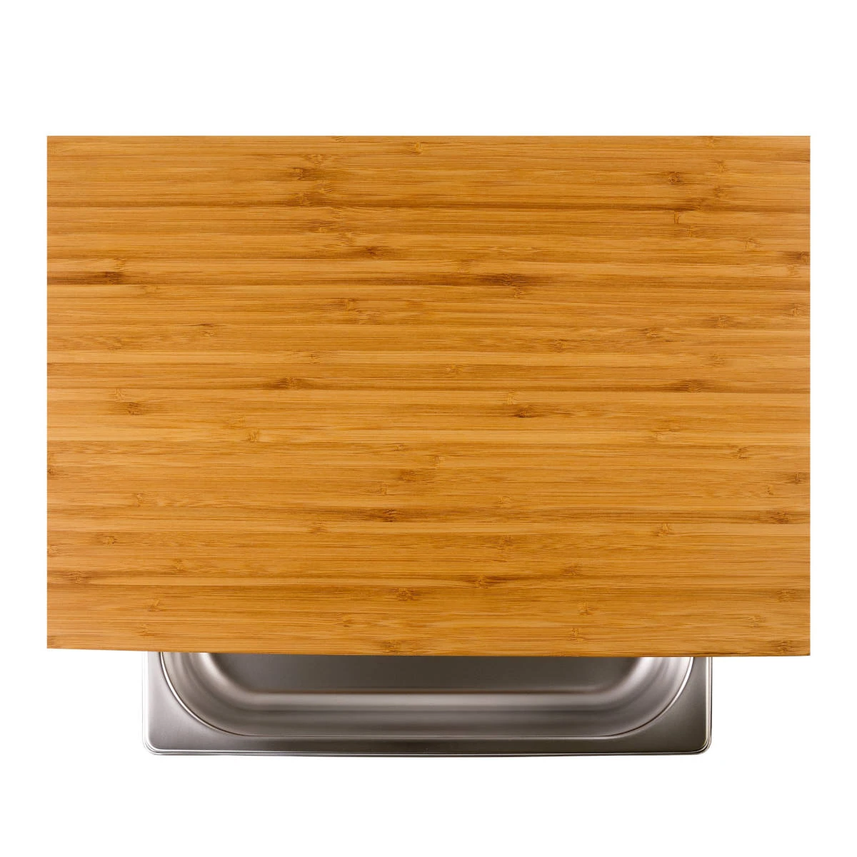 Das Schneidebrett besteht aus geschichtetem , was für eine edle Optik sorgt und gleichzeitig robuste Stabilität und langanhaltende Freude an diesem funktionellen Küchenhelfer garantiert. Zudem ist Bambus ein ausgesprochen nachhaltiges Material – das ist regenerativ und ökologisch. Die wertet das ganze Schneidebrett nicht nur optisch auf, sondern sie bleibt leichtgängig wie eine Schublade und kann nach hinten und vorne herausgeschoben werden. Schält Obst und Gemüse, schneidet Euer Brot oder zerlegt Geflügel auf dem massiven Bambus-Holzbrett, das Euch eine mit einer Größe von 43 x 29 cm bietet. Alle Abfälle und Brotkrümel schiebt Ihr einfach in die Auffangwanne und schon sind sie aus dem Weg. Die Auffangwanne aus Edelstahl ist für die Spülmaschine geeignet.