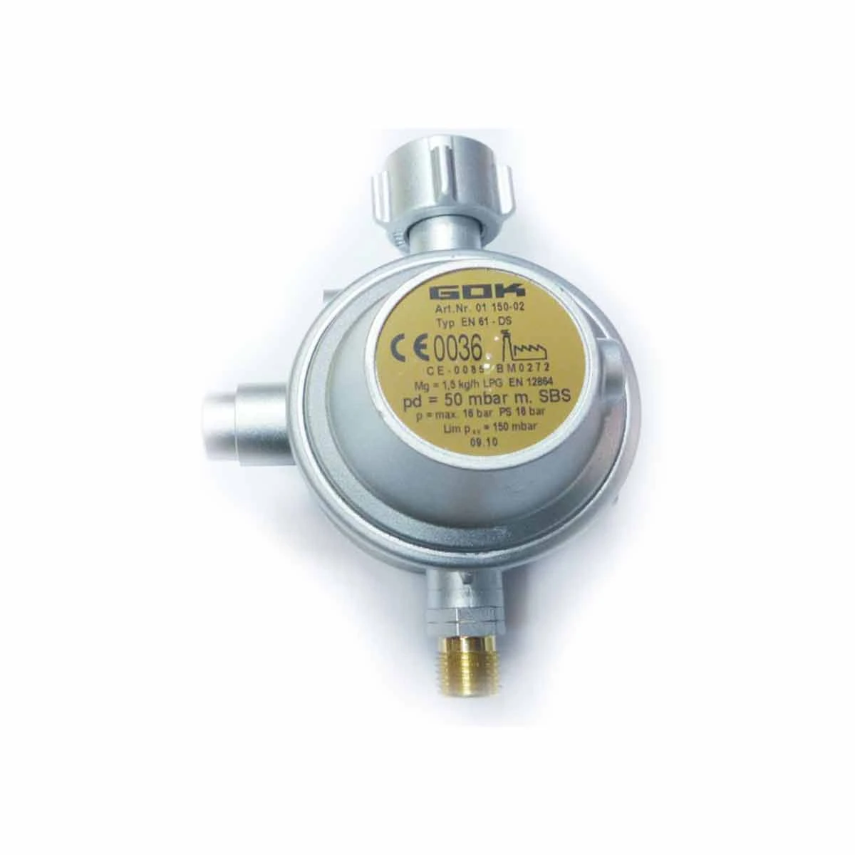 GOK Gasregler Camping Kartusche 1kg/h 50mbar PS10bar GAZ X G1/4LH-KN Exp.