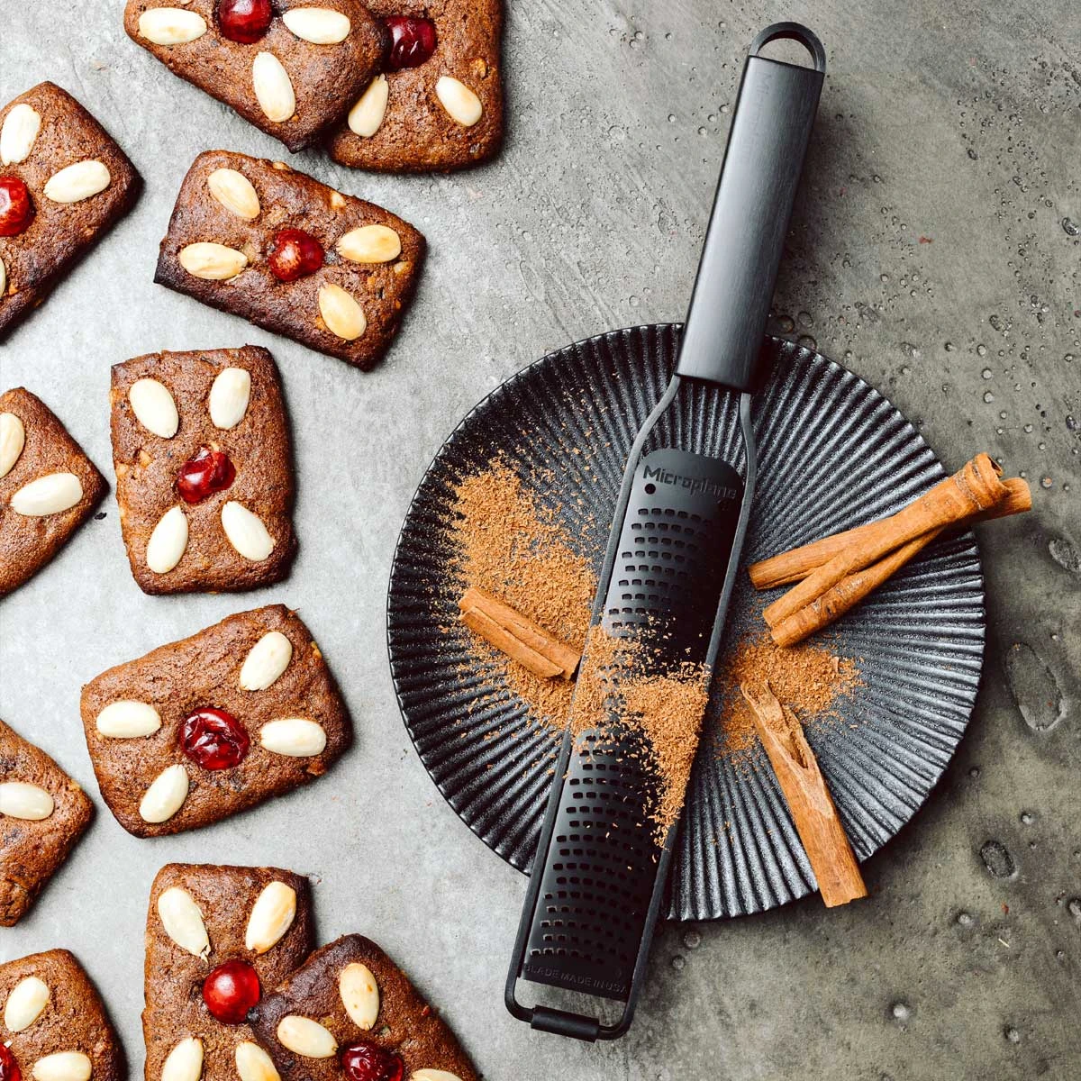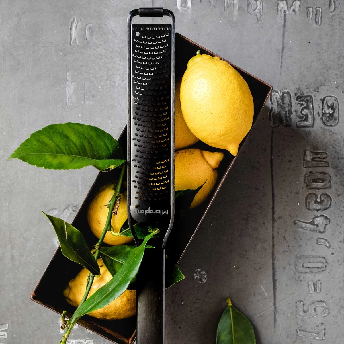 Wer neben höchster Funktionalität auch Wert auf legt, wird an der Microplane Black Sheep Serie seine wahre Freude haben. Vom Griff über den Rahmen bis zur Klinge in schwarze Optik gehüllt, bestechen die Black Sheep Reiben mit ihrem Aussehen. Eine funktionelle sorgt für zusätzliche Kratzfestigkeit.