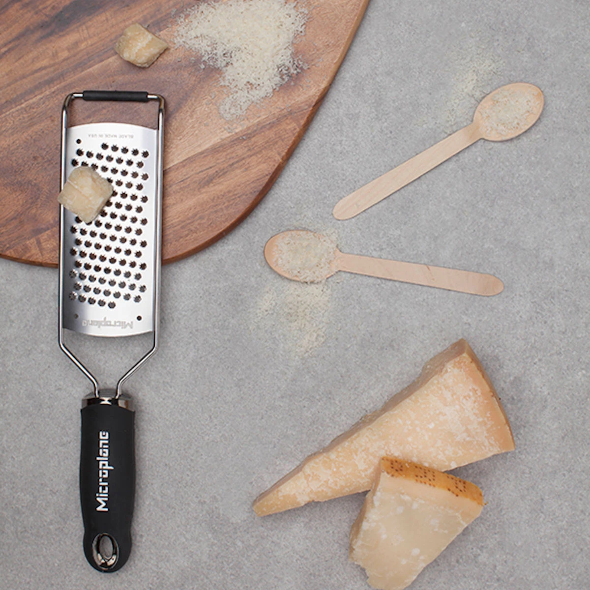 Die Reibe mit Sternenklinge von Microplane ist für verschiedene Lebensmittel geeignet, darunter: Hartkäse, Zitrusfrüchte, Schokolade, Ingwer, Muskatnuss und viele weitere.