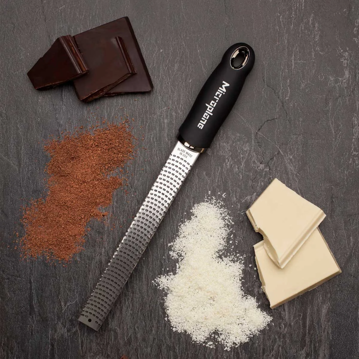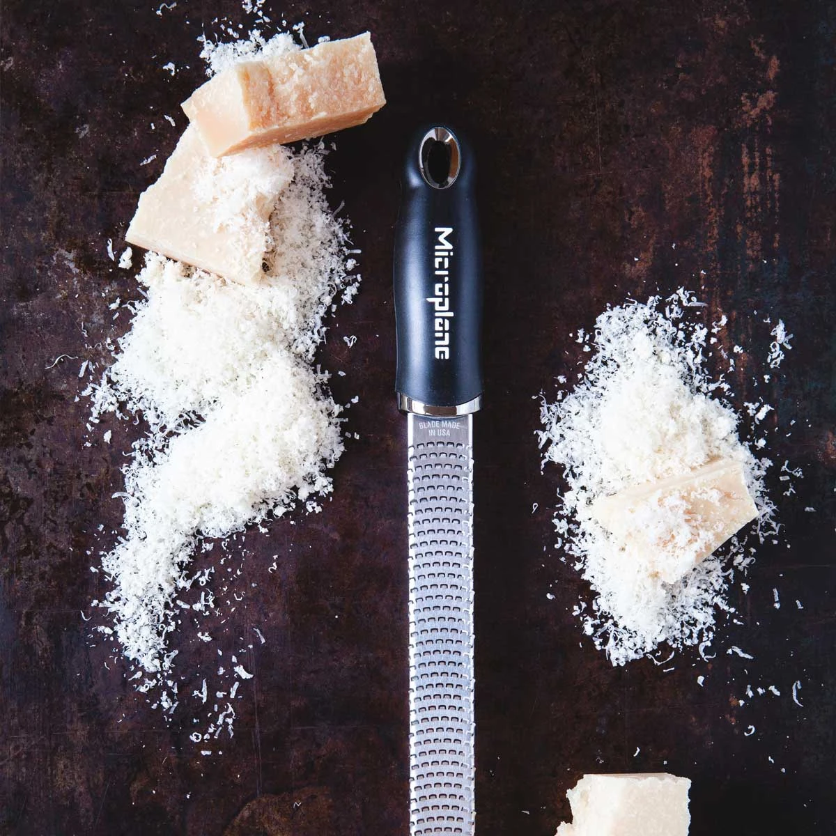 Die Reiben von Microplane sind für verschiedene Lebensmittel geeignet, darunter: Zitrusfrüchte, Hartkäse, Ingwer, Schokolade, Muskatnuss, Trüffel und viele weitere.