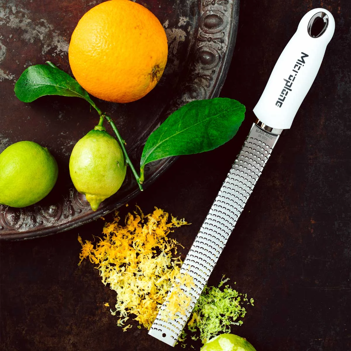 Die Reiben von Microplane sind für verschiedene Lebensmittel geeignet, darunter: Zitrusfrüchte, Hartkäse, Ingwer, Schokolade, Muskatnuss, Trüffel und viele weitere.