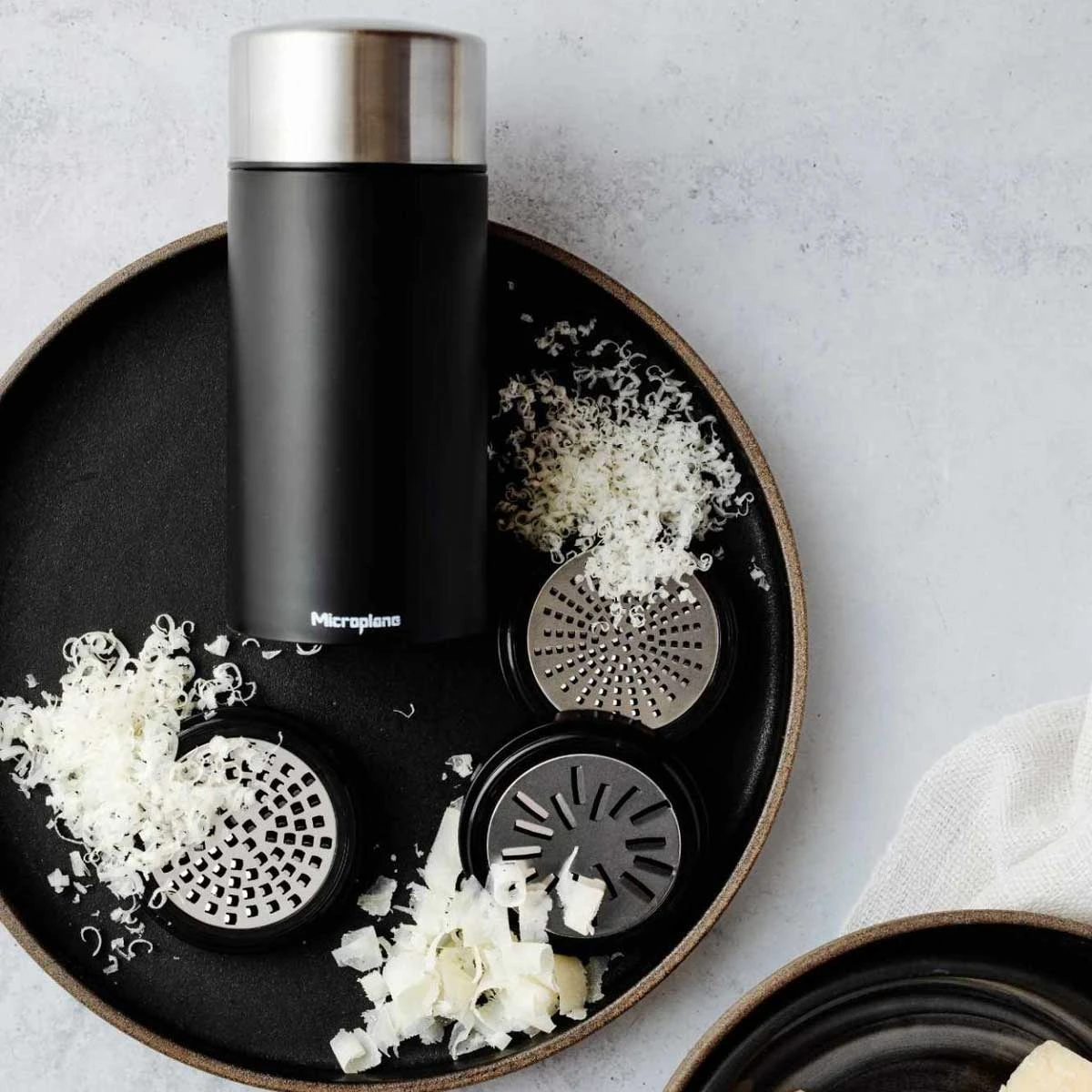 Mit den drei auswechselbaren mahlt, reibt und raspelt die Microplane Universal Mühle Eure Zutaten und Gewürze je nach Bedarf. Grobes Salz, Pfefferkörner und Muskatnuss können zum Nachwürzen bei Tisch fein gemahlen werden, während grobe Parmesanstreifen Eure Pasta als Topping veredeln. Sie ist durch drei Reibescheiben in fein, mittel und grob besonders vielseitig einsetzbar – und eignet sich auch hervorragend für Schokolade, Knoblauch, Nüsse, Samen, Kerne, Kokosnuss und Gewürze wie Zimtstangen, Sternanis und Tonkabohnen.
