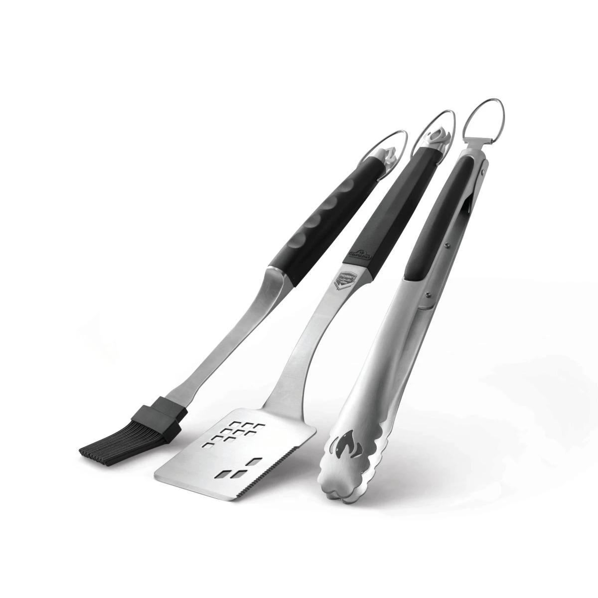 Das Napoleon Grillbesteck in der Presidents Limited Edition ist ein 3-teiliges Grillbesteck. Das Besteck ist in einem hochwertigen Design und aus Edelstahl gefertigt und mit schwarzen Griffen. Der und scharfer Spitze ist ideal für Steaks und größeres Grillgut geeignet. Die ist ideal für das Hantieren von feinem, zartem Grillgut geeignet. Vergessen Sie nicht, dass Grillgut mit den Silikonborsten zu bestreichen.