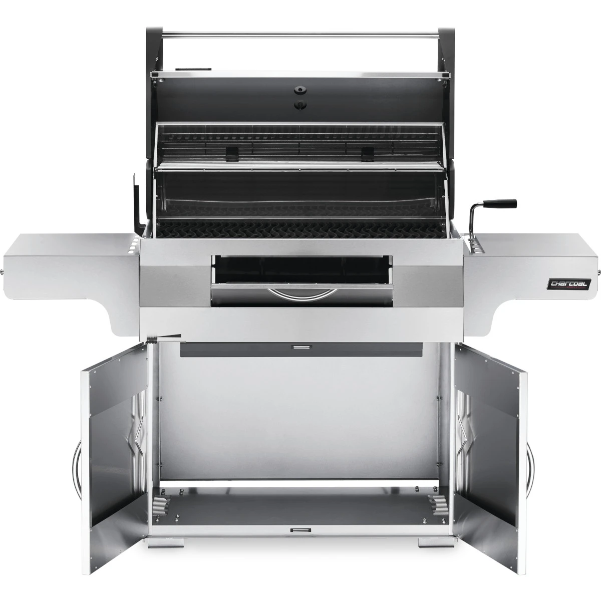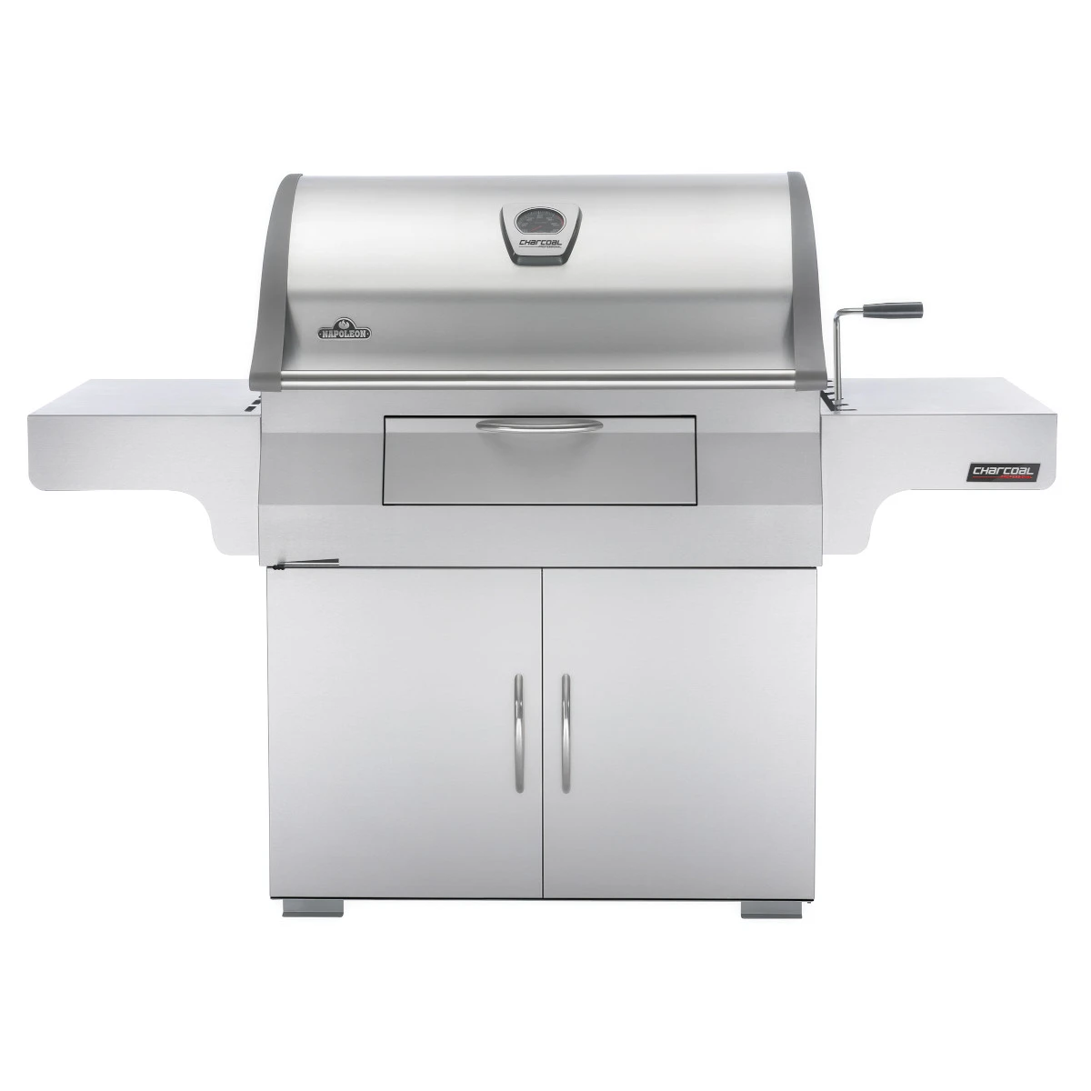 Mit Eleganz und Ausstattung macht der Napoleon® PRO605 Holzkohlegrill seinem Namen alle Ehre: Großzügige Seitenablagen inklusive Besteckhaken, alles aus Edelstahl gefertigt, machen die Grillvorbereitungen noch komfortabler.