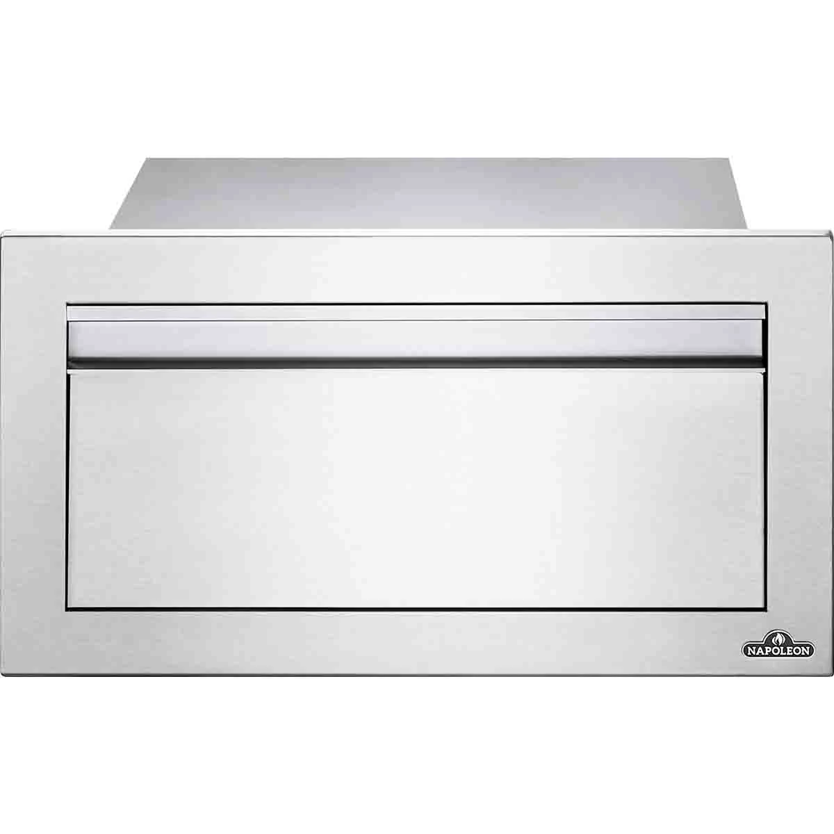 Praktisch zum verstauen der wichtigsten Grillutensilien wie Zange, Bürste und co. Hochwertiges Edelstahl mit Softclose funktion. Robust und Langlebit mit edlem Design.