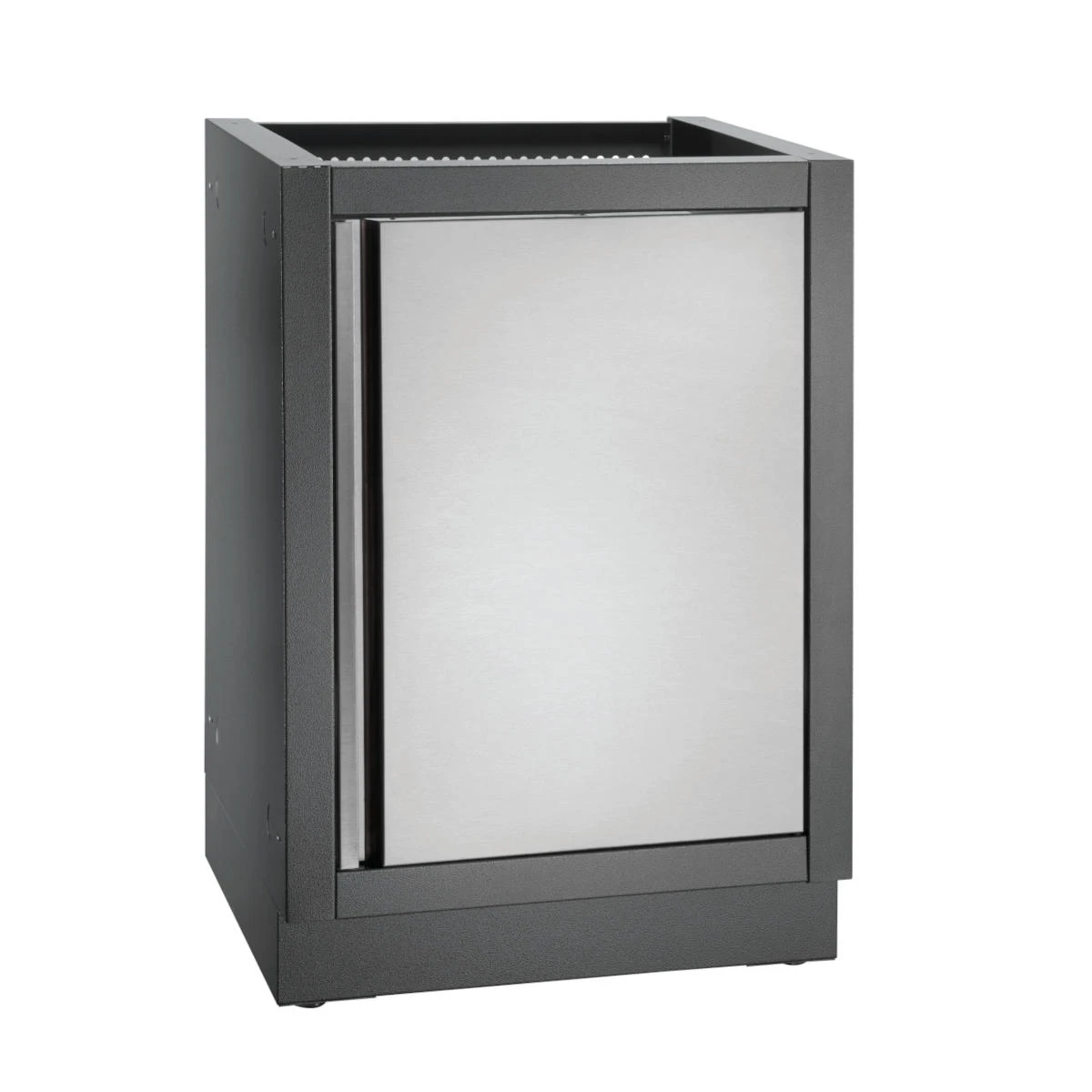 Der Oasis Gasflaschenschrank besteht aus pulverbeschichtetem, verzinkten Stahl. Die Edelstahltür könnt Ihr links oder rechts montierten und an Eure Außenküche optimal anpassen. Zudem verfügt der Outdoorschrank über eine ausziehbare Schublade für die Propangasflasche, die sie stabil hält und Euren Rücken beim Austausch der Gasflaschen schont. Die vier Nivellierfüße sorgen für eine perfekte Anpassung, sodass Eure Outdoor-Küche auf jedem Untergrund sicher steht.