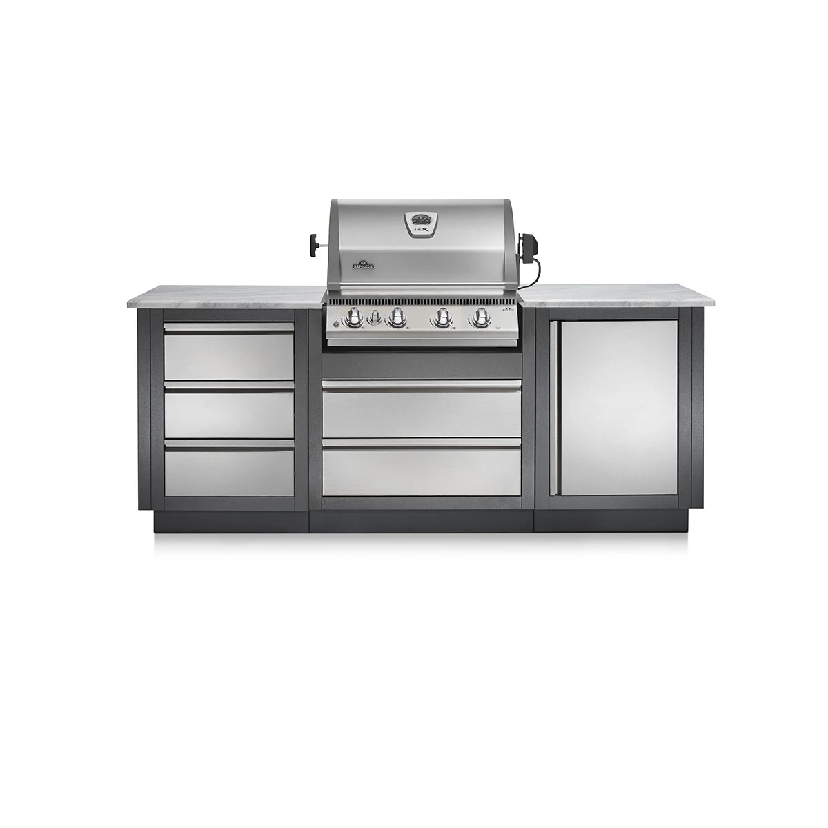 Modern und zeitlos im Design, macht der verwendete Edelstahl den Schrank nicht einfach nur robust. Der Napoleon Universalschrank lässt sich mit wenigen Handgriffen optimal pflegen. Sorgt mit Einlagen für noch mehr Stauraum und bringen das wichtige Grillzubehör unter. Oder integriert in den Schrank einfach einen Kühlschrank für