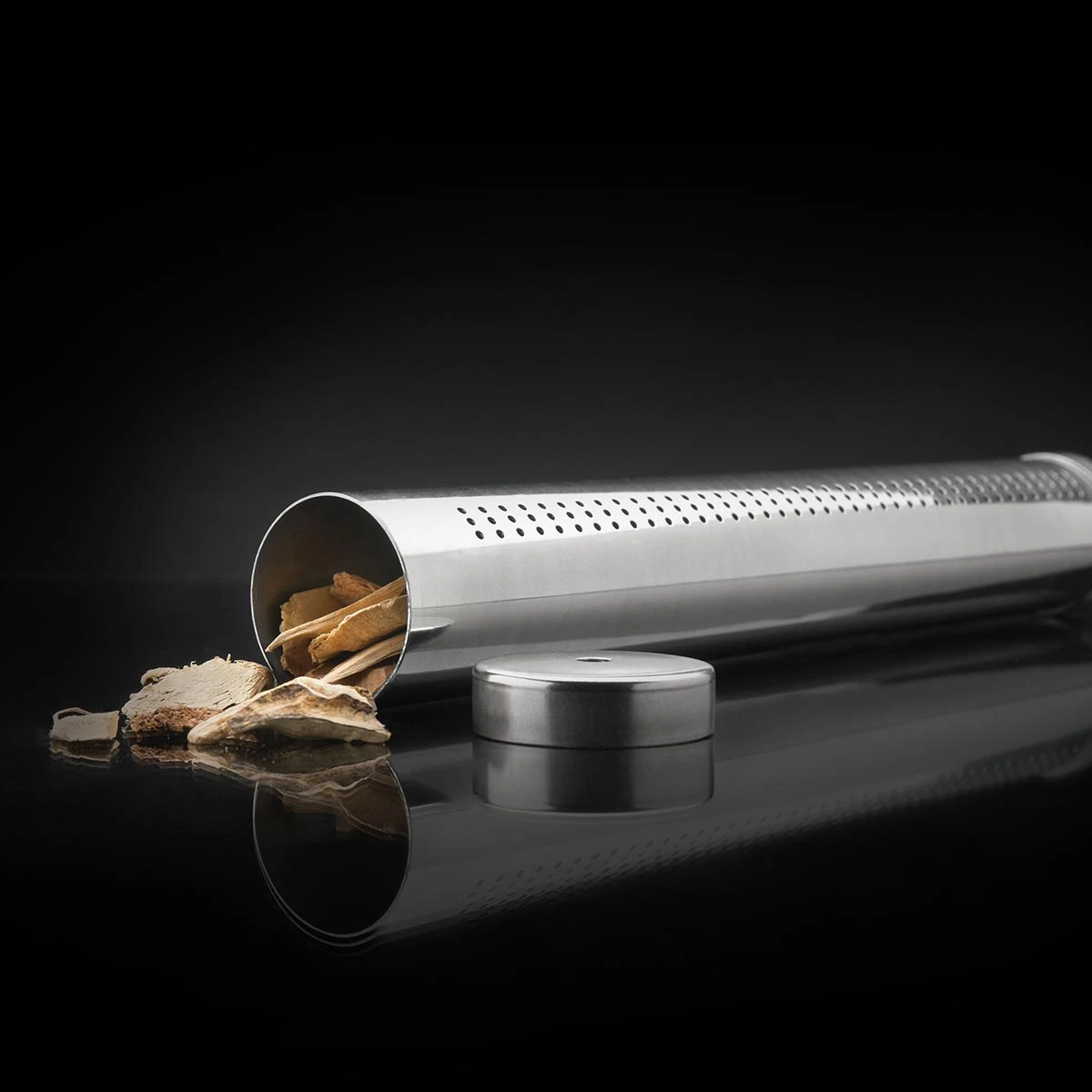 Von zart bis kräftig, fruchtig oder eher mit leichter Kräuternote – Raucharomen feiern einen Siegeszug. Mit der Smoker Pipe von Napoleon wird Euer Grill zu einem Smoker. Einfach die gewünschte Menge Räucherchips vorbereiten, in die Räucherpfeife geben – fertig. Die Räucherpfeife ist beidseitig befüllbar.