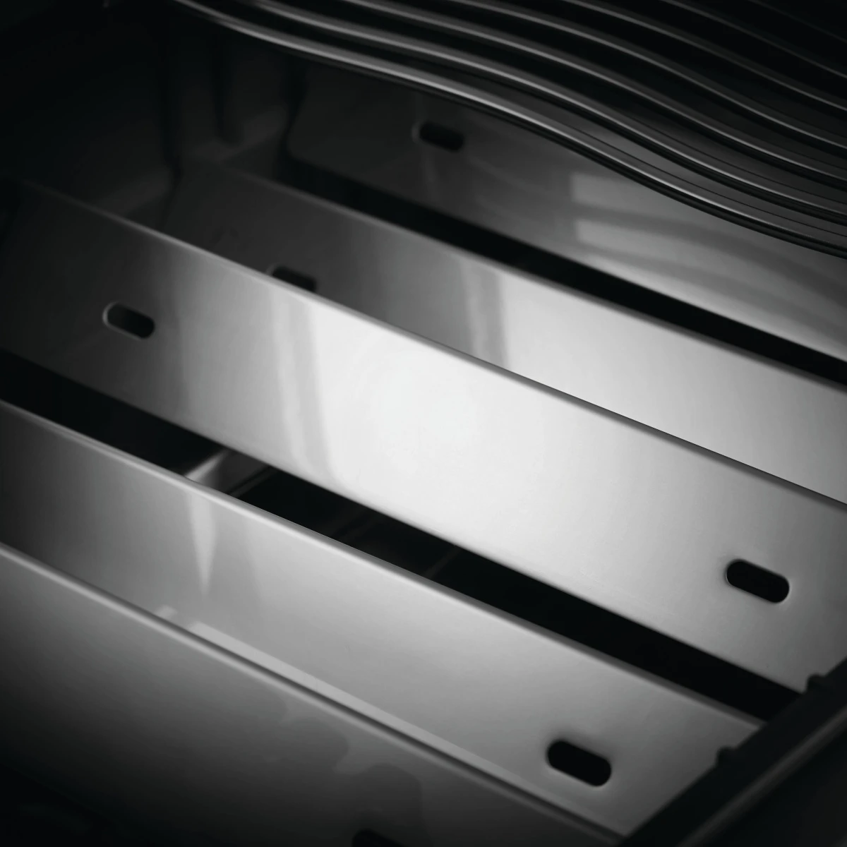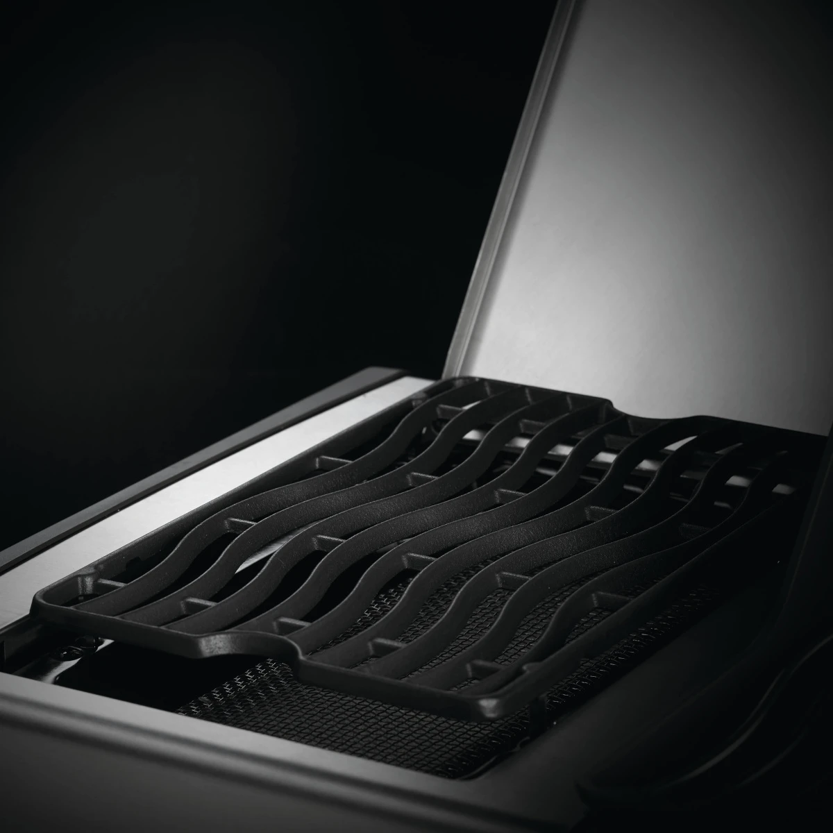 Die geschwungenen Grillroste aus Edelstahl verteilen die Hitze gleichmäßig an das Grillgut. Darüber hinaus sind diese besonders pflegeleicht und rostfrei, sodass man die Roste auch mit Wasser und Spülmittel reinigen kann.