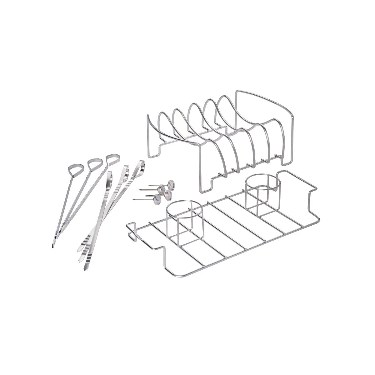 Mit den Spießen lassen sich köstliche Vorspeisen vorbereiten und anrichten, Rippchen und Braten werden einfach im Gestell untergebracht. Ein Bierhähnchen lässt sich ebenso leicht zaubern. Mit dem umfangreichen Set deckt Ihr gleich mehrere Gerichte, die Ihr auf dem Grill zaubern könnt, ab.