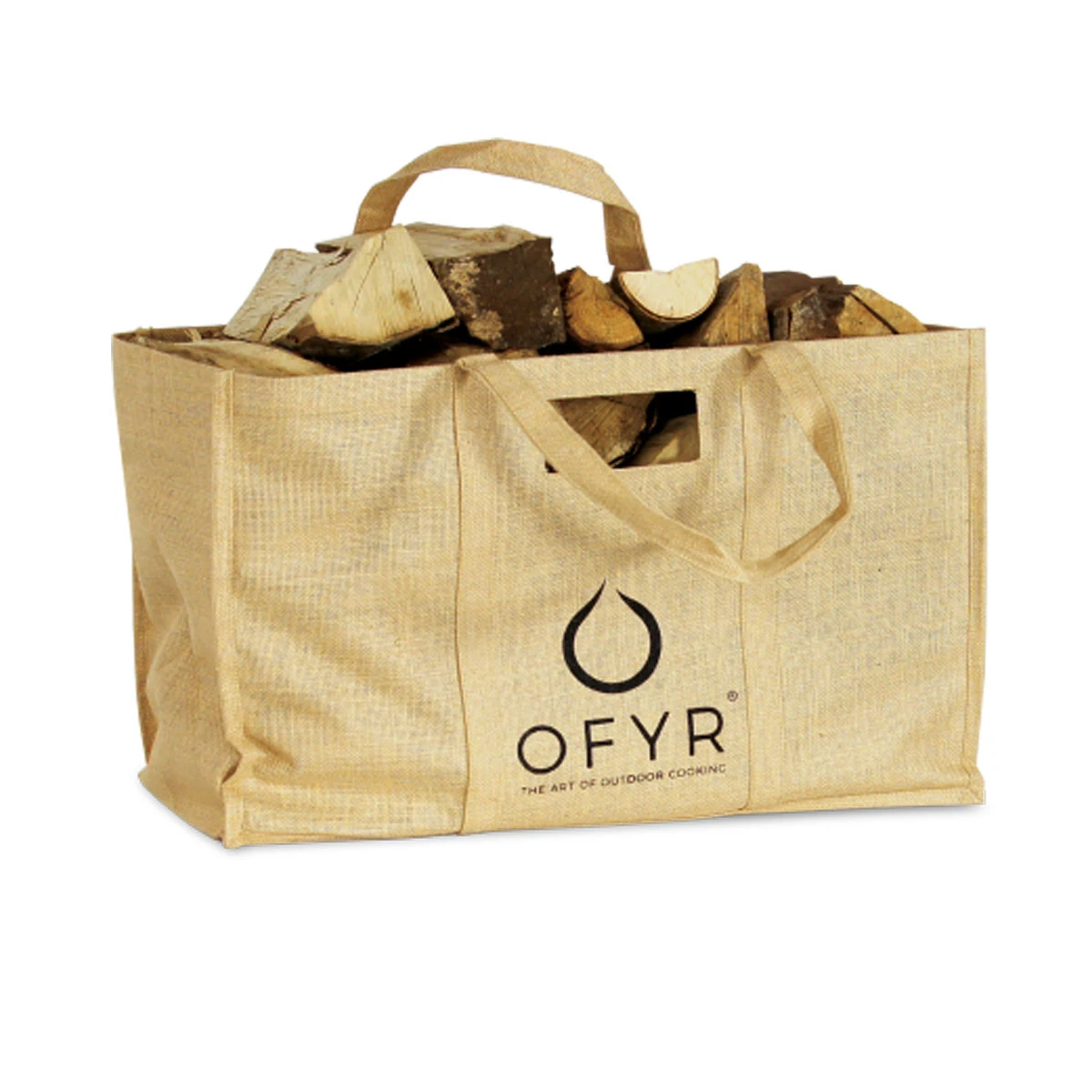 Hiermit transportiert und lagert Ihr Euer Brennholz absolut stilvoll, denn der robuste OFYR Wood Bag aus Jute passt perfekt zum ursprünglichen Lagerfeuer-Lifestyle der OFYR Feuerstellen.