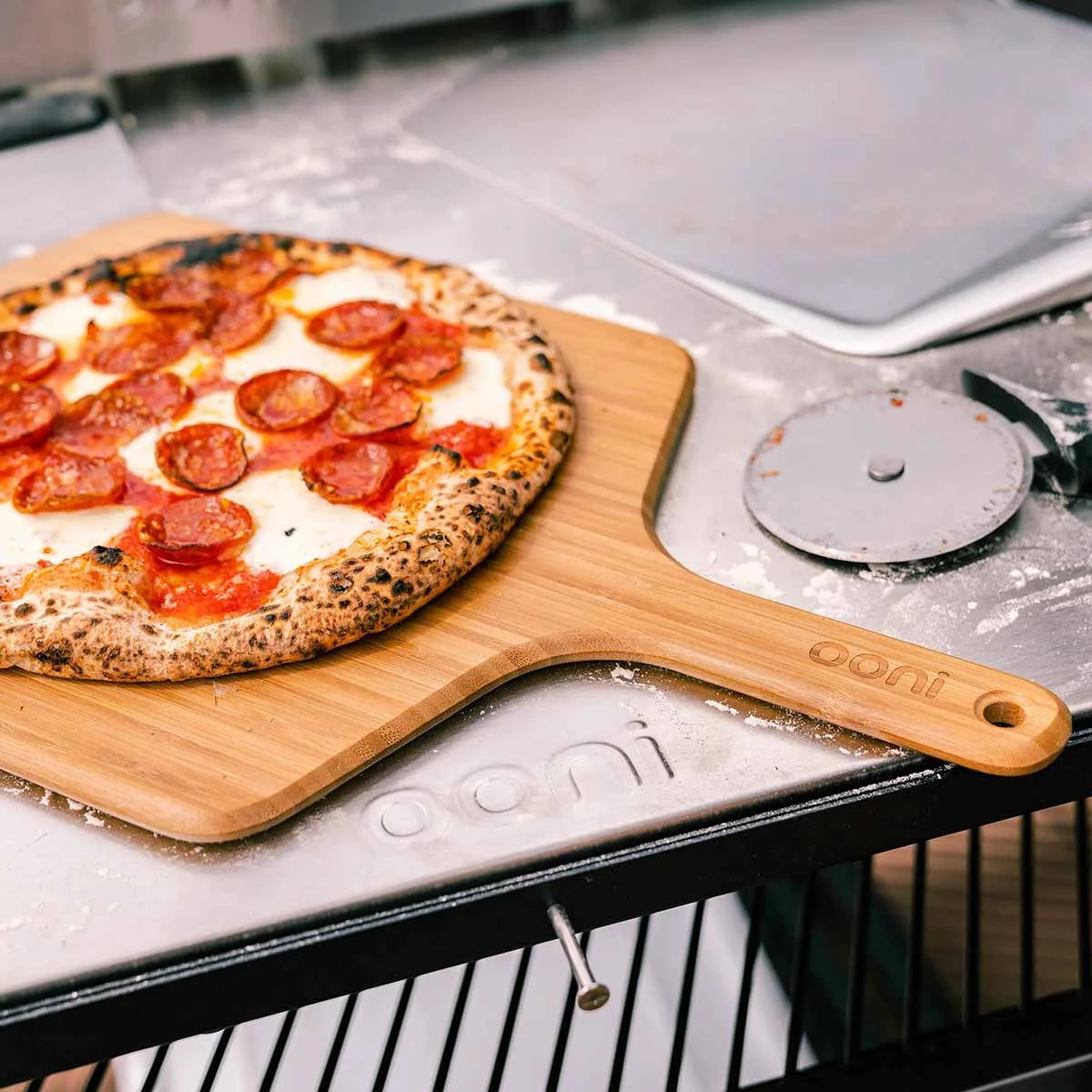 Mit dem Ooni Pizzaschieber aus Bambus lässt sich jede Pizza einfach und schnell in den Ofen schieben – ohne zu kleben oder zu verrutschen. Überzeug dich selbst!
