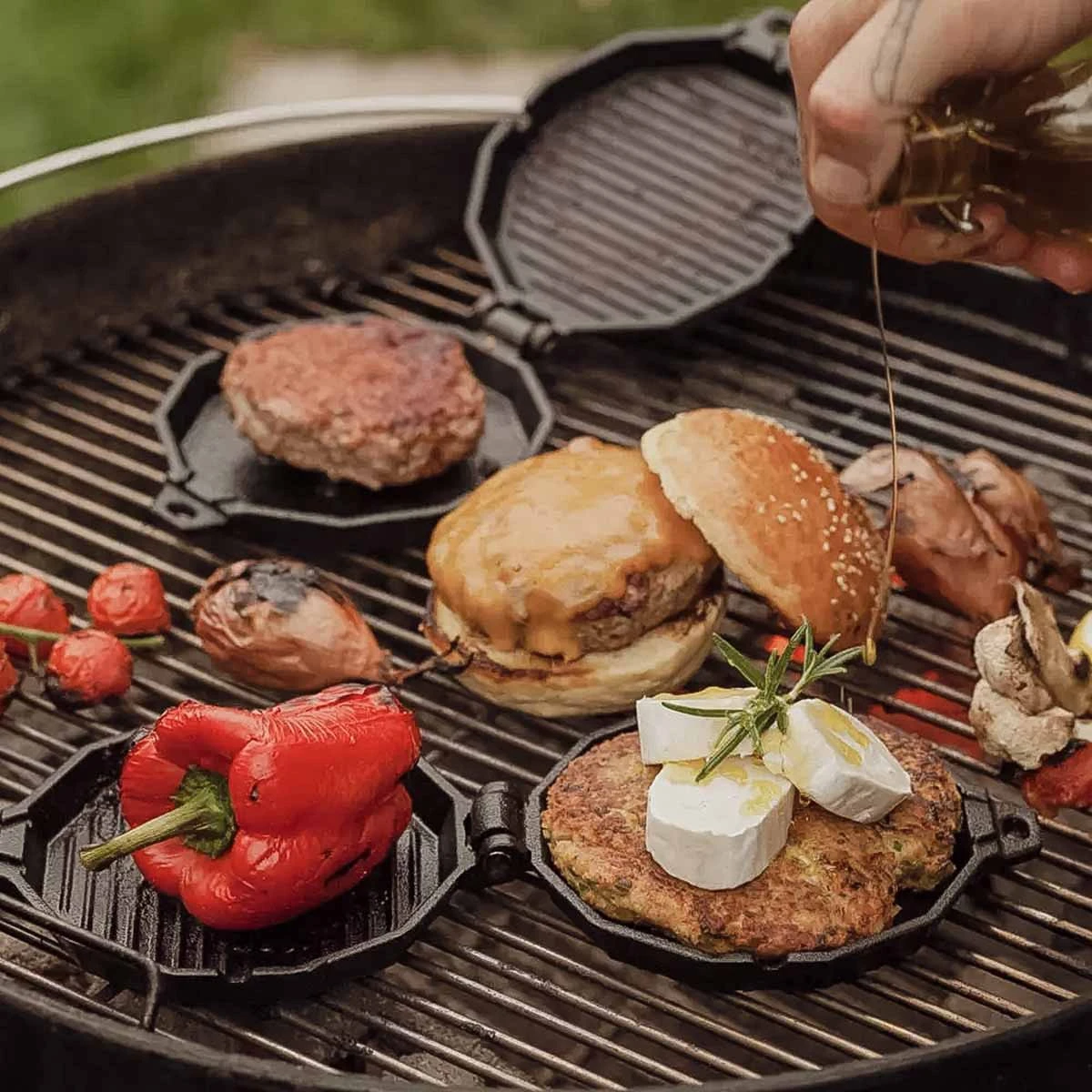 Nicht nur Burger-Fans kommen auf Ihre Kosten. Probiert auch z. B. French Toast, grilled Cheese oder Omeletts im Burgereisen aus. Die fertige Omelette Masse wird in den Burgerdevil gegossen und die Zutaten wie Speck und Zwiebeln können nach Belieben hinzugefügt werden. So Könnt Ihr viele kleine Omeletts hintereinander nach den Wünschen der Gäste braten. Das Burgereisen ist ein vielseitig einsetzbares Grillzubehör.