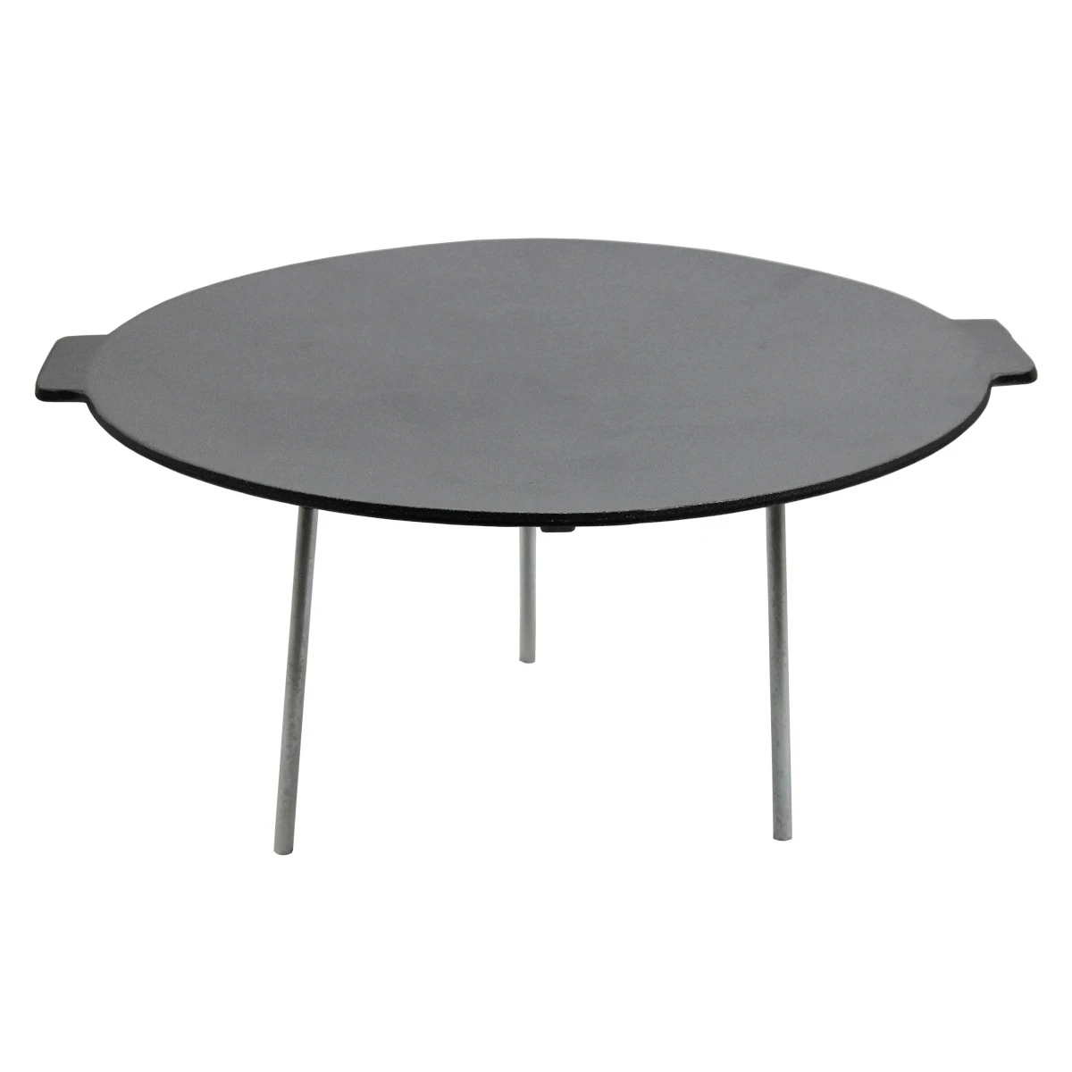 Die Grillpfanne hat einen Durchmesser von 45 cm und besteht aus Stahl. Der Clou der Grillschale ist, dass diese in der Mitte heißer wird als am Rand, sodass das gegrillte Fleisch nach dem scharfen anbraten an der äußeren Seite ruhen kann. Die Grill- und Feuerschale kann im Freien als Kochstelle über einem Gasbrenner, über dem direkten Lagerfeuer oder einem passendem Grill verwendet werden. Durch die abnehmbaren Beine bleibt der Boden bei Bedarf unversehrt. Die Standbeine sind auf der Unterseite montierbar und gewäh