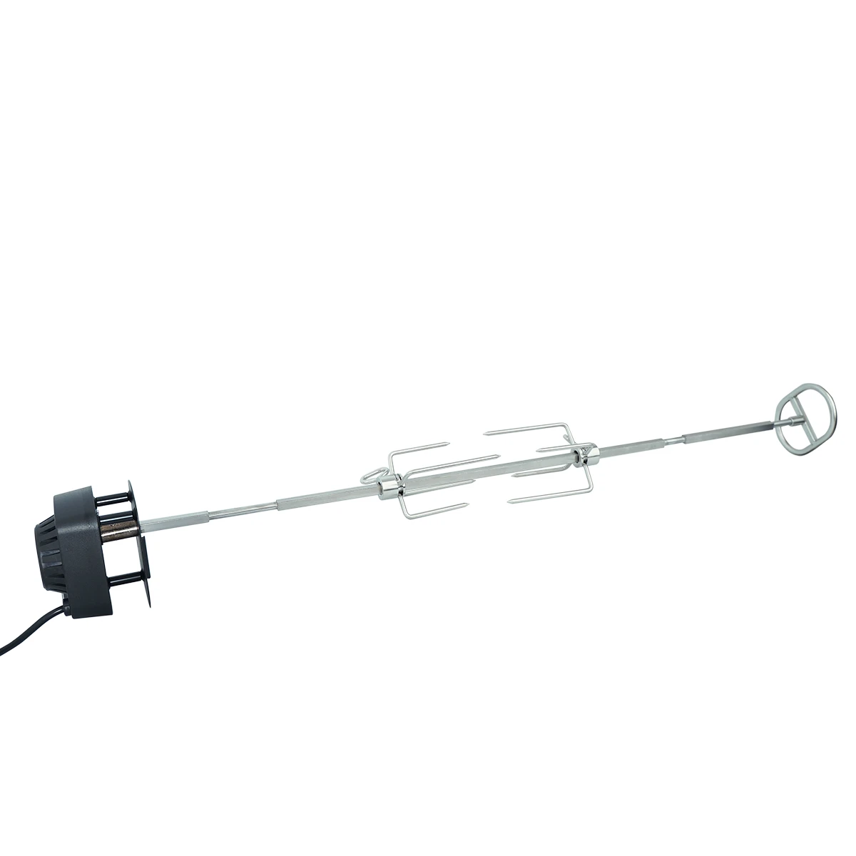 Für den Betrieb benötigt Ihr nur eine . Der Vorteil gegenüber batteriebetriebenen Drehspießen liegt in der höheren Leistungsfähigkeit: Die Rotisserie von SANTOS dreht Euer Grillgut bis zu einem Gewicht von 6 kg absolut zuverlässig und gleichmäßig. Info: Der Motor verfügt über einen Dreh-Richtungswechsel: Schaltet dafür den Motor ab und wieder an. Jetzt dreht sich der Stab in die andere Richtung.