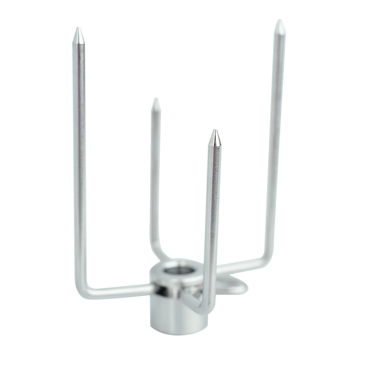 Drehspieß einlegen – fertig: Mit der von SANTOS entwickelten ist die Handhabung der Rotisserie maximal komfortabel. Sie hält den Spießstab aus magnetischem Edelstahl fest in der Halterung der Motoreinheit, sodass keine weitere Fixierung notwendig ist.