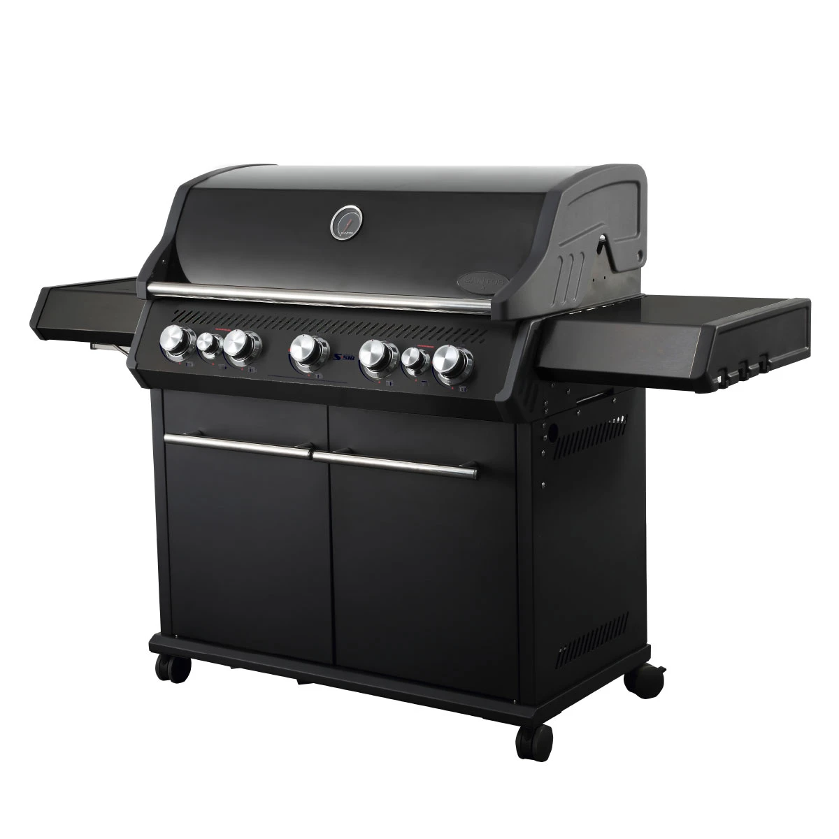 SANTOS S-518 All Black Mit Seiten- Und Heckbrenner, Schwarz, Inkl. Drehspieß, Rostheber & Silikonablage & Graviertes ZWILLING Pro Messer