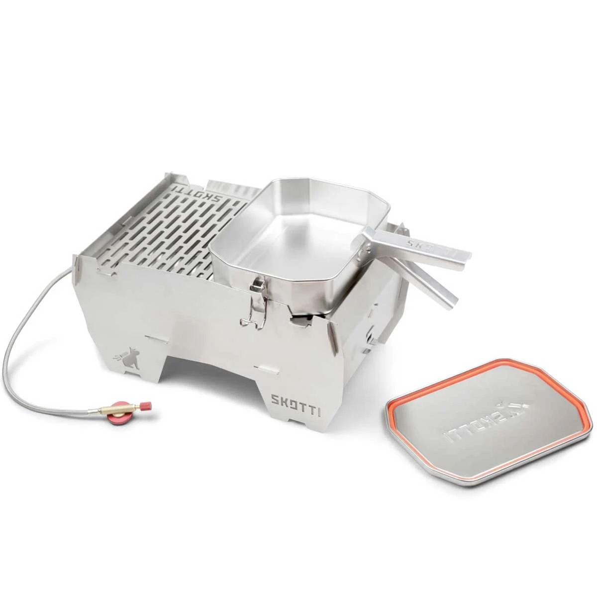 - : Wasser kochen, Eintopf zubereiten, Suppe aufwärmen, Nudeln oder Kartoffeln kochen ist mit der Skotti Boks auch in der Wildnis leicht gemacht. Wenn Ihr den Deckel auf dem Skotti verwenden wollt, entfernt Ihr zuerst die Silikondichtung. Auf dem Grillrost ist die Skotti Boks ein echtes Raumwunder und braucht nur die Hälfte der Skotti Grillfläche, so dass Ihr auf der anderen Seite noch ganz bequem Fleisch und Gemüse grillen könnt.