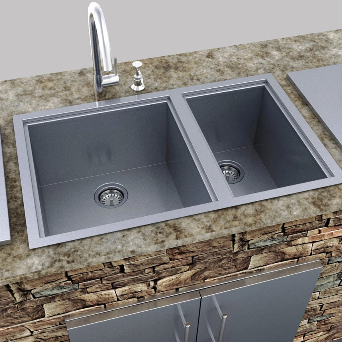 Das Sunstone Doppelwaschbecken besteht aus hochwertigem 304er Edelstahl und verfügt über zwei robuste Abdeckungen mit Griff. Das Waschbecken ist sowohl als Unterbau, als auch flächenbündig montierbar. So könnt Ihr Euch zukünftig den Weg ins Haus sparen und schmutziges Grillbesteck direkt in Eurer Außenküche spülen.