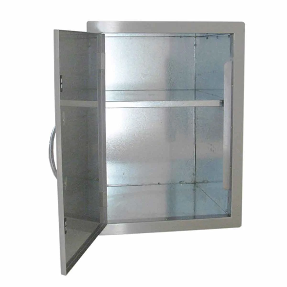 Der Einbauschrank von Sunstone wurde für eine Einpassung unter dem Grill oder auch anderen Modulen Eurer Außenküche designed. Die Tür des Edelstahlschrankes mit verchromten Griffen kann individuell links- oder rechtsseitig montiert werden. Der zugehörige Einlegeboden wird variabel eingesetzt und bietet so zusätzlichen Stauraum. Die Türmagnete sorgen für eine sichere Abdichtung des Einbauschrankes, sodass Euer Grillzubehör vor Wettereinflüssen und Tieren geschützt wird.