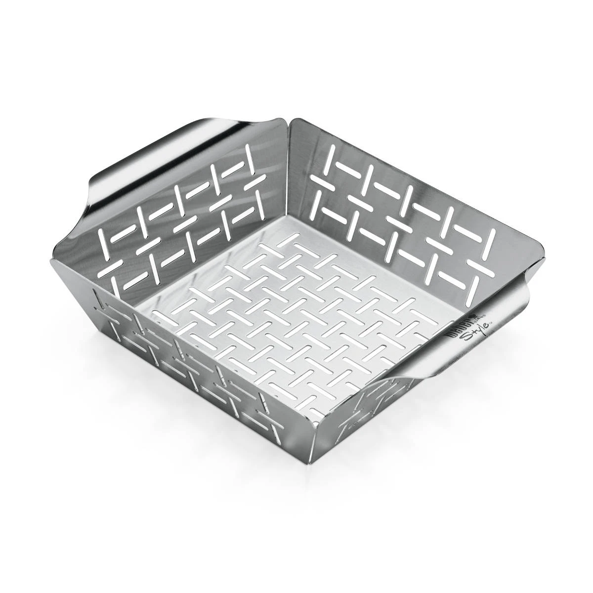 Durch die Öffnungen im Gemüsekorb kann Flüssigkeit ablaufen. So verhindert Ihr nicht nur das Kochen des Gemüses im eigenen Saft. Eure BBQ-Gerichte bleiben mit dem kleinen Weber Style Gemüsekorb besonders knackig – es landet ein Maximum an Geschmack auf dem Teller.