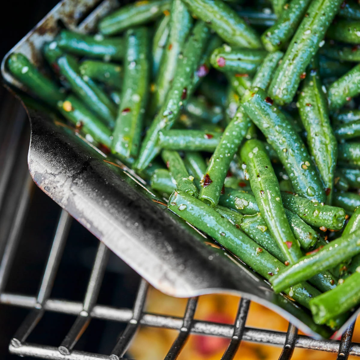 Hier schmeckt Gemüse besonders knackig. Mit dem Weber Style Gemüsekorb wird Euer Grill zum perfekten BBQ. Einfach Zucchini und Auberginen würfeln, Paprika in mundgerechte Stücke schneiden und Bohnen oder Zuckerschoten hinzugeben. Das Ganze abschmecken und zusammen in den vorgeheizten Korb geben.
